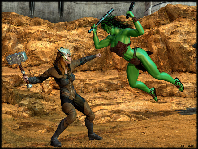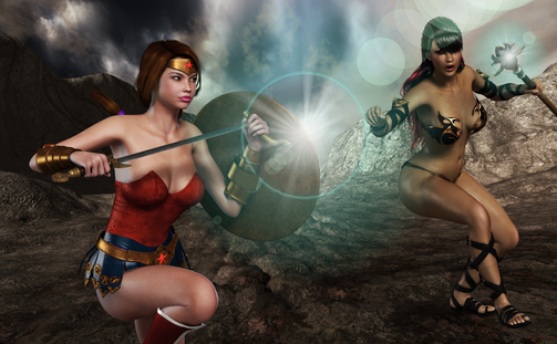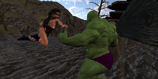 Wonder Woman versus She-Hulk: nice setting and action poses!