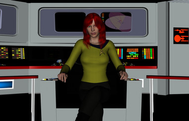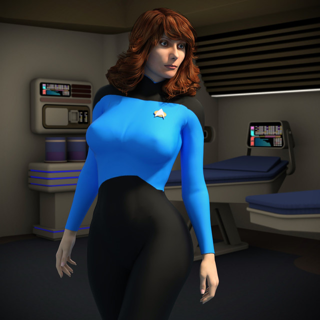 I admit I am ignorant when it comes to Star Trek fan art and fiction, but what's with the glowing eyes? Is this a species of your own, or one from the various known species? I mean she's lovely and her red air is quite sexy. Being a hypochondriac, I would practically live in the med-bay.
