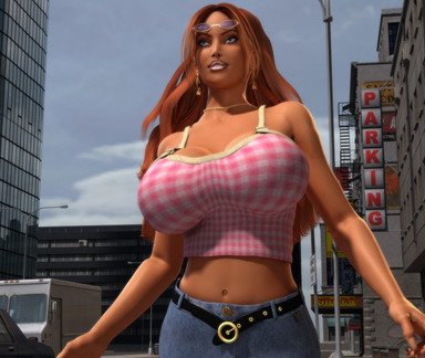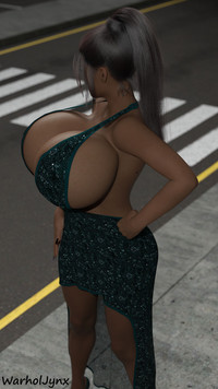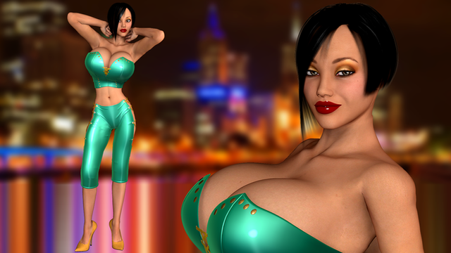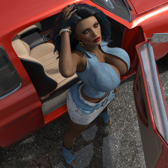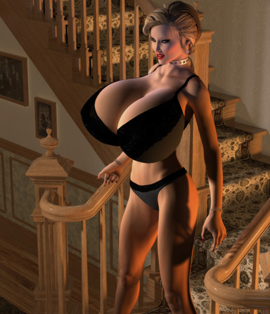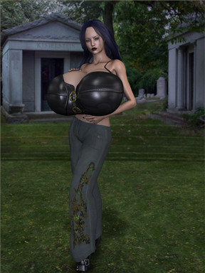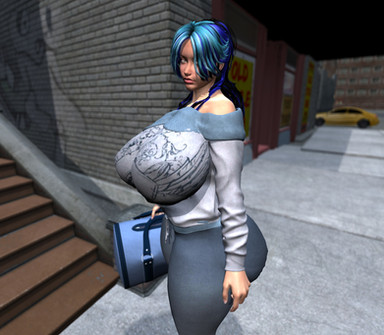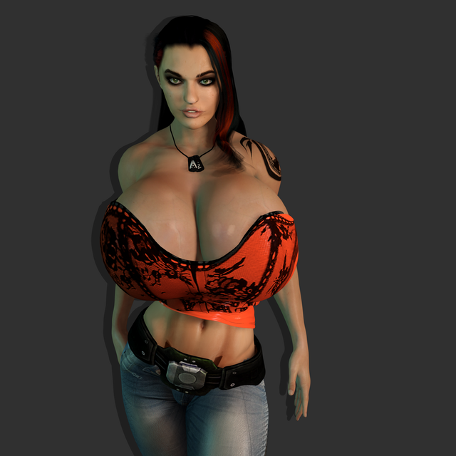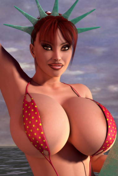 I'm surprised that we don't see more science-fiction settings for chicks like her. After all, megazongas like these really belong in a zero-gee space habitat.