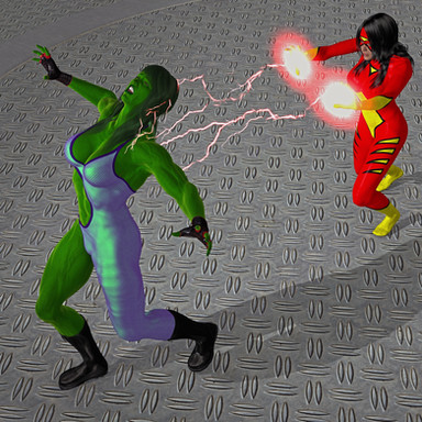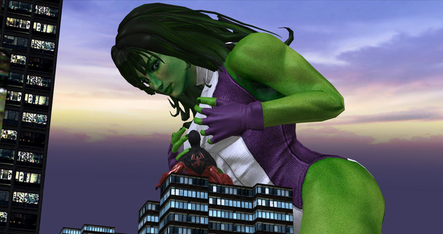 She-Hulk: "No fair using your powers."Wasp: "Says the green muscular woman."