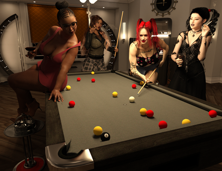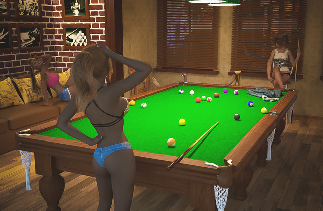 The girls decided to play pool for their girls night out. However, Alice learned the hard way to not brag about her skills right before sinking the eight ball on her opening shot. Her friends enjoyed the irony.Enjoy.