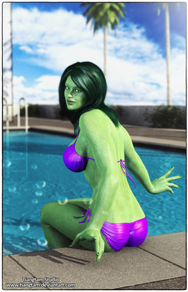 Jennifer Walters aka She-hulk looks nice in this pool-side render!