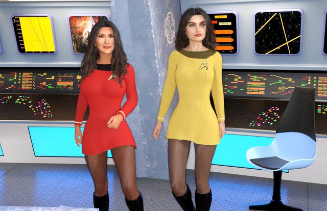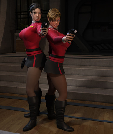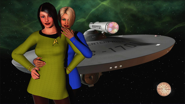Captian Janette T Kirk of the starship Enterprise with her loyal first officer Spock.Enjoy.