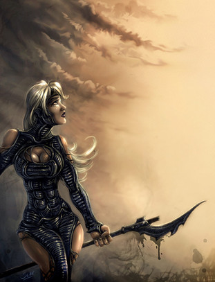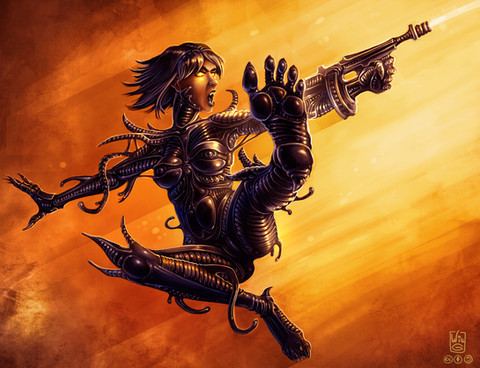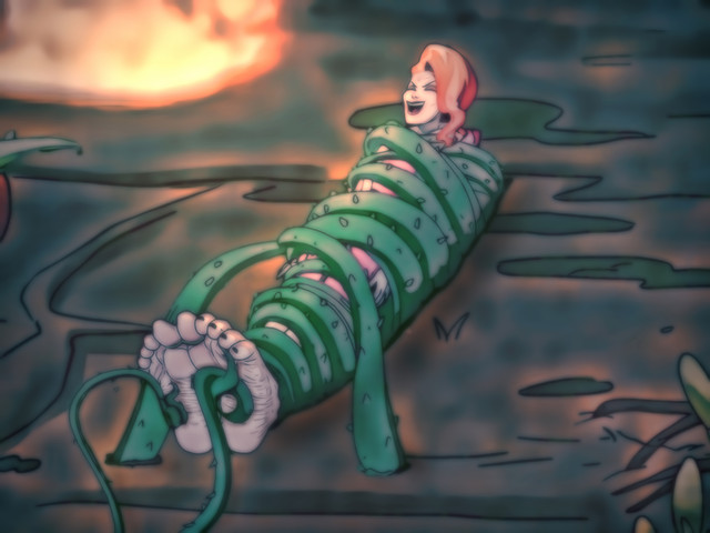 Another fairly recent one, focusing on my favourite type of bondage; mummification; although instead of wraps, here we have a damsel wrapped up in a slimy, sticky alien cocoon.Related content