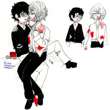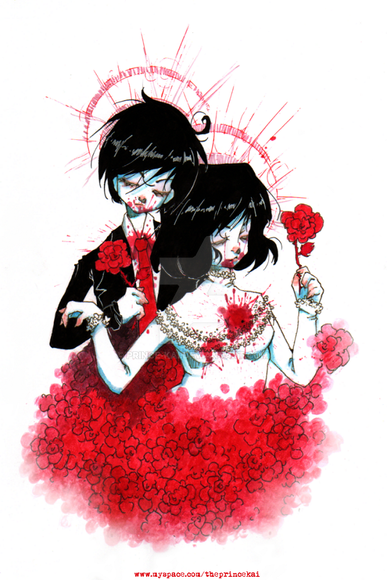 goodness i love the blood, how you did the splatter and all. and the pink hues... this is just really morbidly cute Β