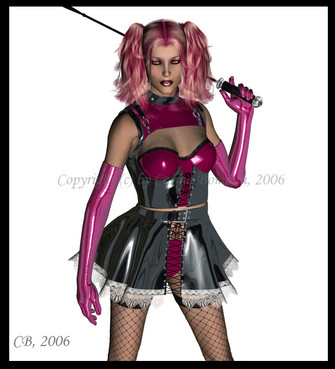 She is so sexy ! She looks perfect, the pose, the clothes, her face, etc. I would not have known that the whip was done in any fashion other than the rest of the image. Beautiful !