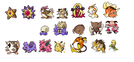 #pokemon #sprite #ditto #ekans #gastly #gloom #horsea #kakuna #magnemite #mankey #oddish #tangela #vileplume #vulpix #weedle #zubat