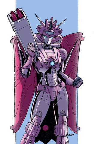 I've got some basic sketches done, but nothing worth putting up yet. I've got it sketched out where the shell splits in half for robot mode and mounts on her shoulders. I have them drawn like satelite dishes. (Communications Officer) And, on the Transmetal, most of the shell are huge tires that drop down in alt mode. Kinda' like Transmetal Rattrap's wheels.