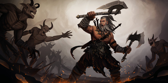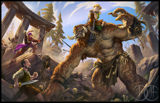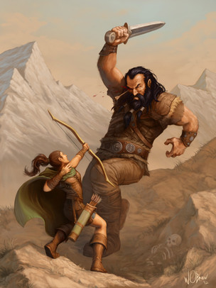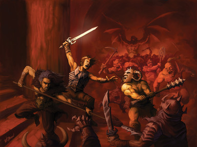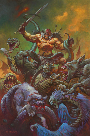 For the Norrongard RPG, from Lazy Wolf Studios.I really wanted this piece to have a Frazetta feel to it. I drew inspiration from two in particuilar: "(Conan) The Destroyer" and The "Fire and Ice" poster art.