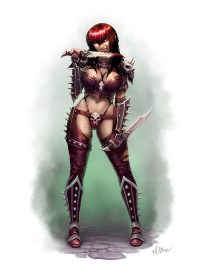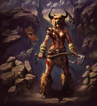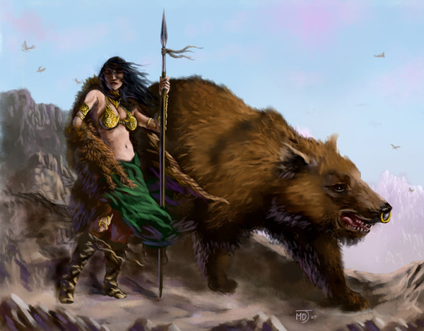 The outfit (and the beastriding of course) makes me think of Tyris Flare from the Golden Axe: Beast game a few years back:Β en.wikipedia.org/wiki/Golden_Aβ¦