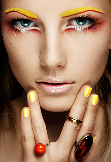 I love everything about this, lighting, makeup, and composition. There's one little detail that I'm unsure of though. When I see this image I feel like I should be captured by those beautiful eyes and the dramatic eye makeup(and I am), but my attention keeps getting diverted by the two yellow nails.