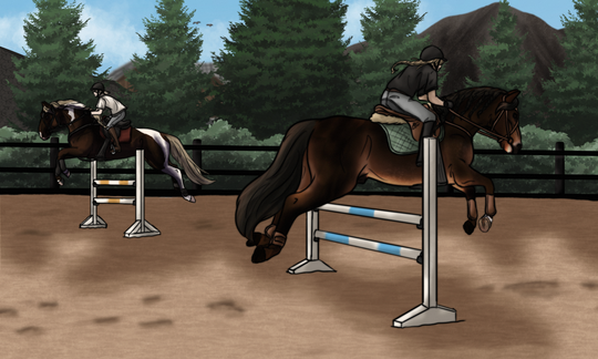 Characters: Raymond Burris and Jennifer Lee. Horses: Beroeren (the buckskin) and Mockingbird (seal brown)This took forever, jeez, but it's done. I used chromatic aberration or whatever you call it on this. It makes it more three-dimensional and slightly changes the placement of the blue and green RGB channels for a camera effect. Anyways, I realized a sketch page I posted got 1k views, that's crazy.