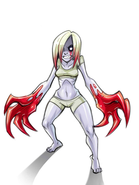 I don't know *shrugs* I thought of something more of a praying mantis only with blades on her arms. I didn't realize you came up with a similar one O.O Now I feel like a douche ;_; all the cool ideas are taken because I suck