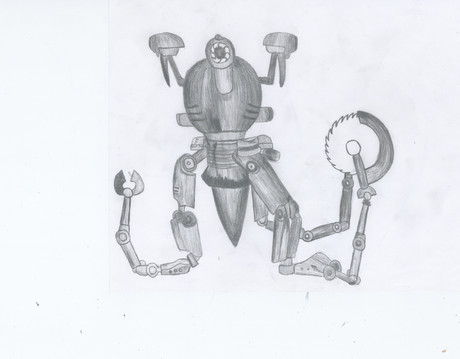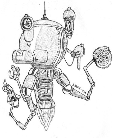 Anyway, here we can see him inspecting with a magnifying glass, attempting to adjust a fallen hat with his circular saw because how's a fedora supposed to stay on top of a shiny robot eye, and staring into the far distance while grasping a rubber duck. Why a rubber duck? Good question! You see, it's because that duck is going to crack this whole case wide open! I'm not really sure, it just popped into my mind while drawing.
