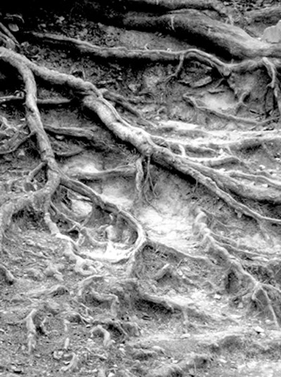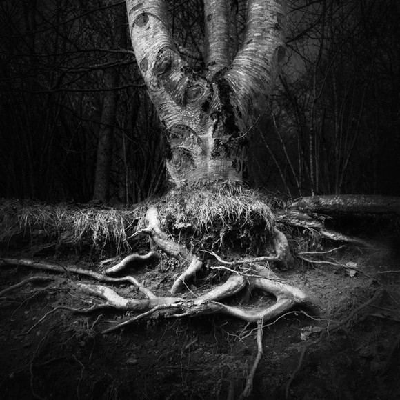 We usually perceive tress and plants in general as passive and static, while actually they are not - they are really expansive, they just happen to move in the different time scale. The roots conquer a bit of new living space everyday by slowly overgrowing the soil - we just do not pay attention. This photograph captures it perfectly. Organic, crooked lines in the photo leave us with a sense of uneasiness, as thought we were watching a monster (or a deformed hand) slowly creeping upon us or. This sense is strengthened by the fact that what the photo portrays actually is not obvious at the first sight.