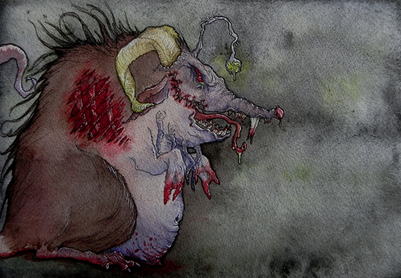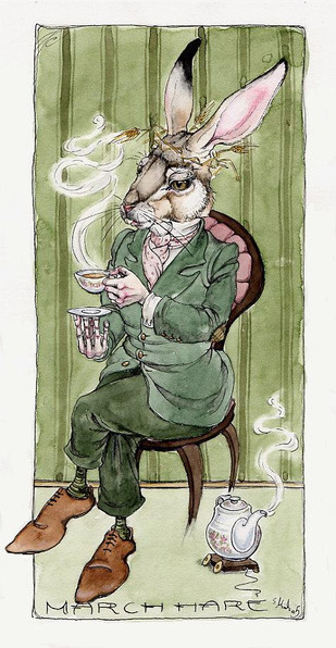 Un petit fanart du Seigneur des Anneaux, avec un Bilbo en rabbit, et pas en hobbit.Aquarelle au cafΓ© (technique de ma Rubis Firenos [link] )