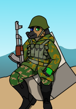 A young and devoutly loyal junior officer of the Furonan ArmySide note: The camouflage seems redundant considering how colorful the soldiers are.