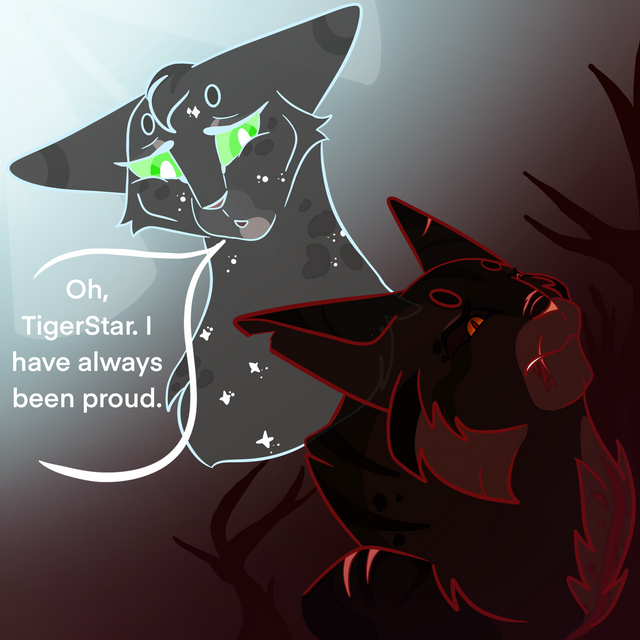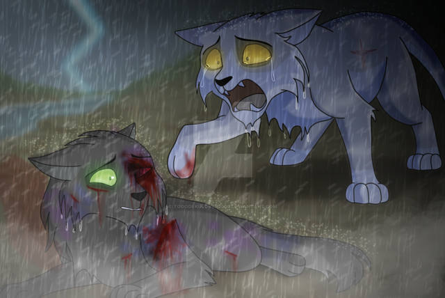 For serenitywhitewolf 's contest, category 2I suddenly happened to come up with another idea. What if... it was Bird who spoke to Raven instead of Scourge? Raven would be fighting as furiously as ever, as she knows her mother watches over her and guides her paws. She would keep fighting instead of doubling over because she realises it's not her. And I also believe Bird went to StarClan because she believes in them, and was a good cat, despite her heritage. Drawn using PaintToolSAI.