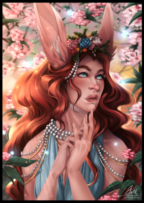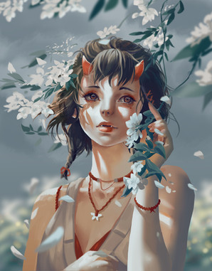 this is very nice drawing, very cute OC and the pose and colors you put her in are so soft and fragile. She is looking very feminine