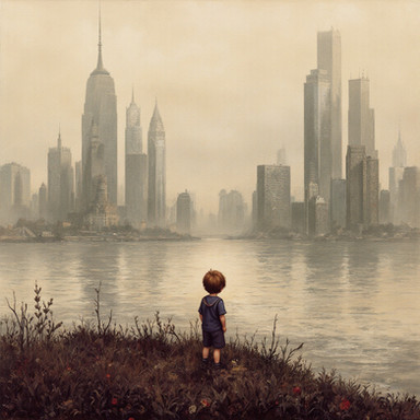 Wow... this is very beautiful. I love how you drew the buildings and roads. I'm also glad you chose a child to stand there - I feel that if it was a teenager or an adult, it just wouldn't have that... "feeling".