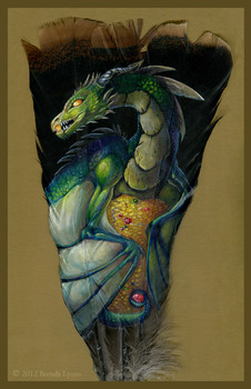 A couple months ago I got an itch to draw a BIG SWIRLY TWISTY DRAGON WITH FEATHERY WINGS, and I sketched it out and then forgot about it. Once I got caught up on things, I finally got the time to finish it up. Just in time for the Anthrocon art show, too! The original of this painting will be in the art show this weekend.Also I have no idea why, but I wanted to make it a BEE DRAGON. Or more accurately, a bee wyvern, since I'm pretty sure she doesn't have any hind feet.
