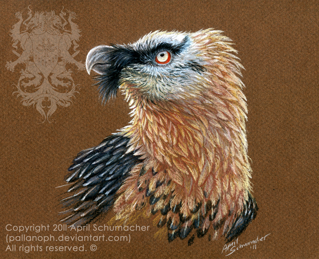 A late Christmas gift for =SageGoat ! For a while she's been urging me to paint a Lammergeier, and I've always meant to. Finally I got off my butt and did it!Watercolor on cold-press Fabriano, 8 X 10 inches