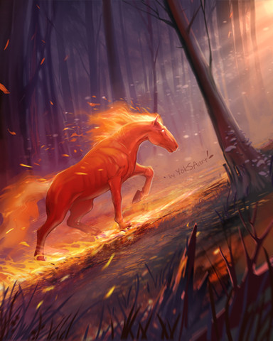 Thanks! I wanted to show it transforming from its white stallion form back into its natural kelpie form.