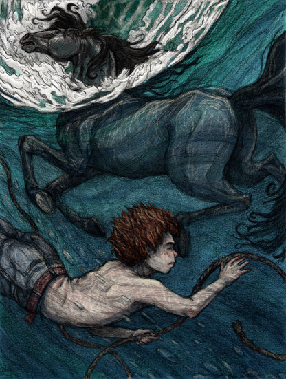 Poor lad. We could only watch as that horse ran all the way to the edge of the loch, then leapt right in without even breaking his stride. We heard Calan screaming all the way until he disappeared under the water...there was nothing we could do for him...
