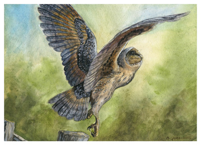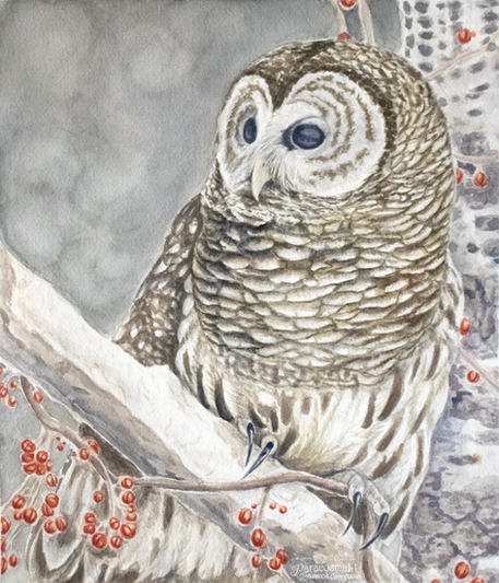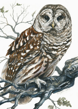 A very, very late painting for ~Calicolupe of Omar, a barred owl who was a resident of the Carolina Raptor Center, who sadly passed away a few months ago.I finished this painting a while ago, just as my computer died! But today I got a new computer, so I was able to finally start scanning things.