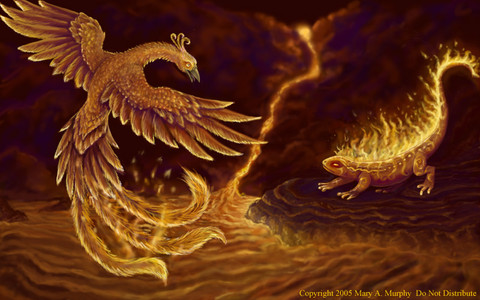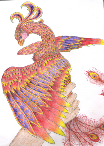 Wow, that's so beautiful! The bits of blue just work so well with the phoenix's flame-colored plumage!