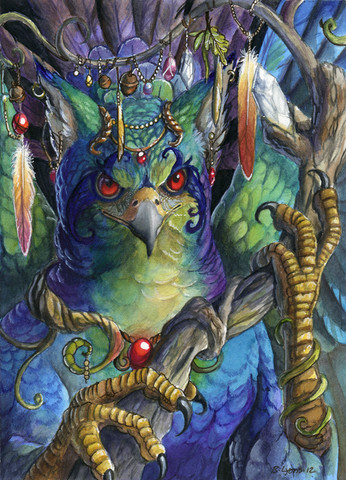 beautiful!!! I adore the colors. Excellent light and shadow, the gems are amazing.Β On one hand, it really bothers me that the bird's beak is cut off, but at the same time, I think you should be commended for your bravery and doing such a thing.