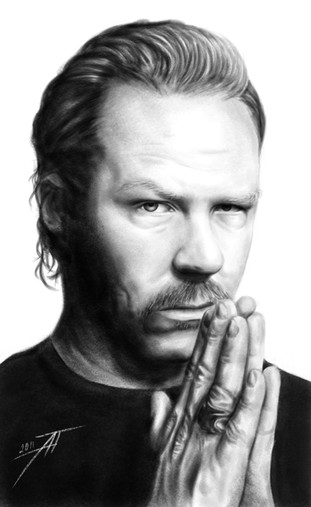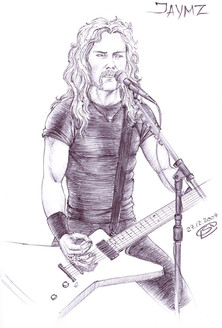 James Hetfield of Metallica, as seen from the fanzone on one of last year shows in Moscow.This pic waited more than half a year to be published. I started drawing it right after the two Metallica concerts I visited last year in April. Don't know what does seeing James kneeling coupla meters in front of you does to someone else, but in me it awakes irresistible desire to draw him
