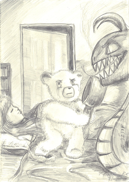 "Baby Bear.... Mama Bear.... and Papa Bear! Soon all these will be mine!!! Aim for the heart!"For 's fairy tale contest