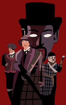 Maybe have Holmes and Watson sitting around the table at the lady's abode, sharing tea and what they have discovered to her.