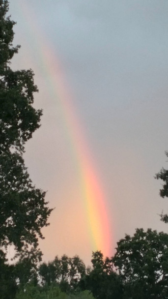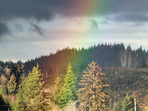 I happened to look outside and see this rainbow while I was putting up some St. Patrick's Day decor the other day and so I naturally raced outside with my camera to capture it before it faded! 🌈☘️🌲This photo belongs to me (Windra) - you are not allowed to use this photograph in any way without permission.