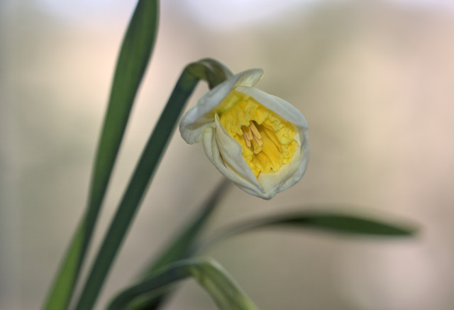 Daffodil trying to open 💛🤍This photo belongs to me (Windra) - you are not allowed to use this photograph in any way without permission.