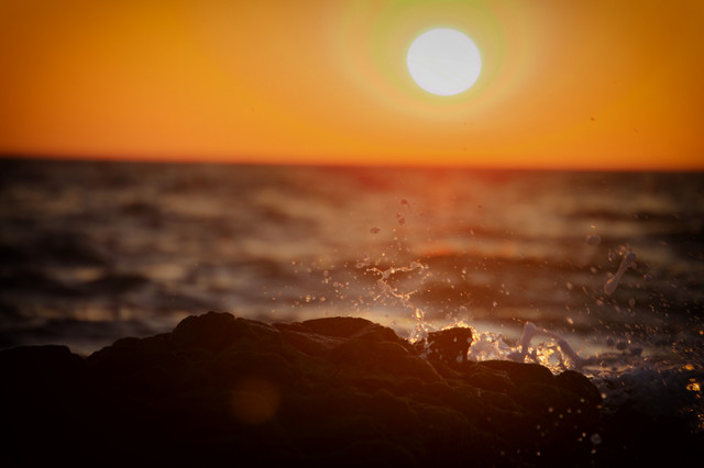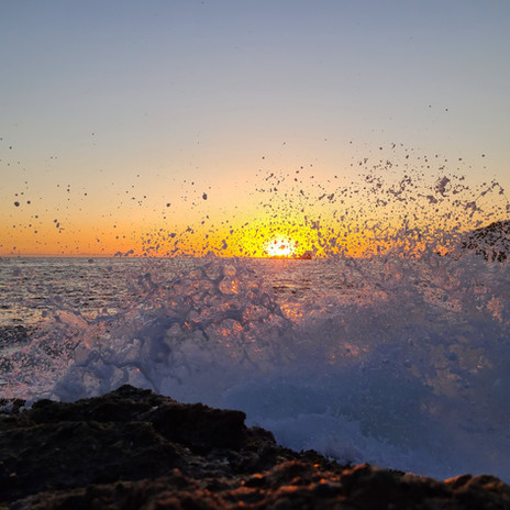 Enjoy the moment 🌞'Golden hour' before sunset at the beach and I timed this right to capture a beautiful burst of sea spray against the rocks.