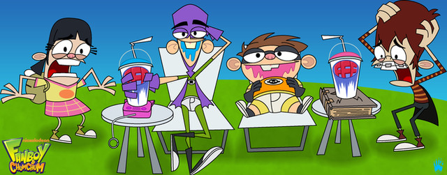 I wasn't sure what to call this, so I made it short and sweet.This is a request for my friend ~skullgirlify , featuring herself with Sigmund, Fanboy, and Boog, her fave characters from Fanboy and Chum Chum. They're having a round of Frosty Freezey Freezes.