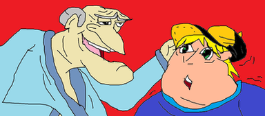 I was lazy and wanted to submit this really soon, so I didn't do a lot to the background, I'm afraid. I apologize. Second, Boog is sitting in a chair because when I drew him standing up Fanboy looked tall compared to him. It's hard to draw his camouflage-ish pants pattern on MS Paint...