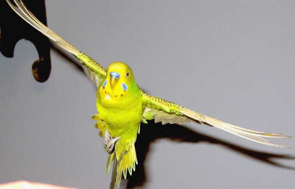We've rarely seen our males do it, but our females have.Β Their wings are clipped for their own protection, to prevent them flying into places they should not be, like the kitchen, which is nearby.Β My wife clips them.Β Our birds are out most of the time when we're around; we have a large four cage complex and a flock of six currently (the largest it's been is nine).Β There's even a ladder so they can get up from the floor.Β Tiels like to roam, so you have to be careful with them, and we don't want a tiel landing on the stove while something is cooking, or risking the ceiling fan.Β As it is, they can still get around quite well; 'tiels and budgies are both strong fliers.