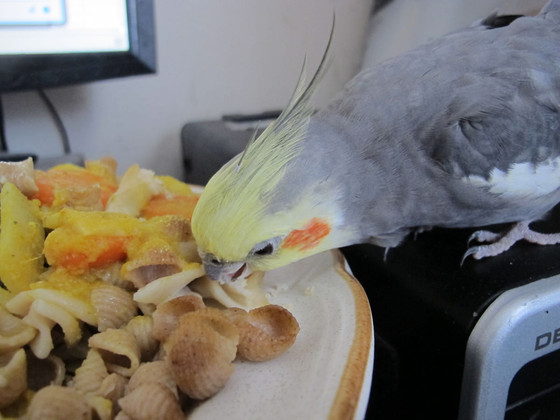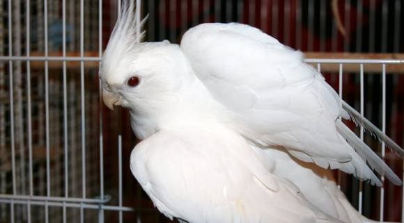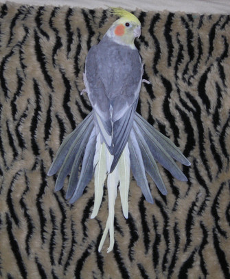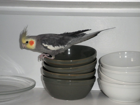 This must be a trait of female cockatiels; our first female, Liriel, used to do this, and so does Luna here, though they never met.Β The clipped feathers make her profile especially bat-like at the edges.Related content