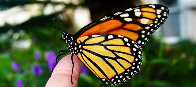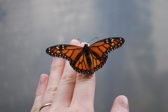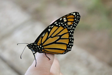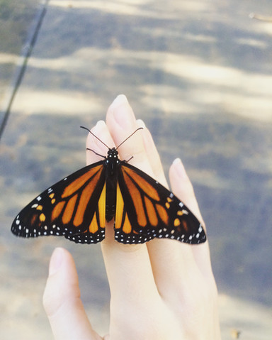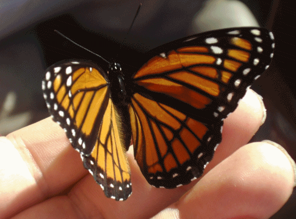 A simple butterfly animation made by lining up two pictures I took of a monarch butterfly that landed on my hand, then adding some fading and timing effects.