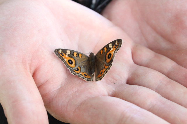 A simple butterfly animation made by lining up two pictures I took of a monarch butterfly that landed on my hand, then adding some fading and timing effects.
