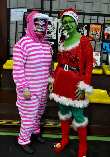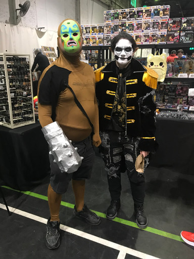 This year I added studs around the eyes of Rachel's mask and opened up the mouth and nose a bit more on mine to allow for better ventilation, as I've had issues with overheating and fogging up. The cool weather helped, and I had only a few issues this year, but I think I still may need to put in a hidden mouth-piece in the future to channel my breathing better.