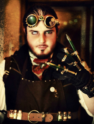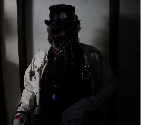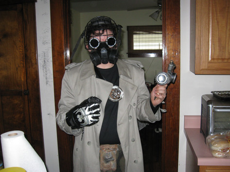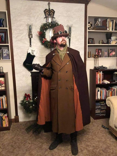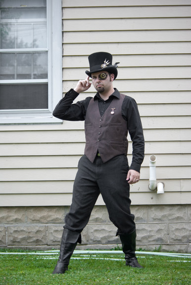 I make my hat bands interchangeable usually; here I am trying out my blue leather and copper hatband looks pretty good on my gray top hat to make this: Gray Top Hat with Blue Leather and Copper Hatband . I've been told it reminds people heavily of the Civil War, and admit that the hatband alone was kind of modeled after that era.I've also updated my steampunk army coat , brass knuckles glove , and brass-fitted boots .