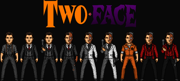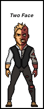 Two-Face is a supervillain appearing in comic books published by DC Comics, commonly as an adversary of the superhero Batman. The character was created by Bob Kane and first appeared in Detective Comics #66 (August 1942). As one of Batman's most enduring enemies, Two-Face belongs to the collective of adversaries that make up Batman's rogues gallery.Born and raised in Gotham, Harvey Dent was brought up in a lower-class and violent household. His father was an abusive alcoholic who repeatedly beat the boy, often using a double-headed coin to give the child a "chance" to escape a beating. Dent spent much of his early life suffering from various mental issues, notably bipolar disorder and paranoia. Despite his early hardships, he was a good student and able to obtain a law degree. Deciding that he wished to make Gotham a better place, he ran for and won the position of District Attorney in Gotham. He was noted for his dedication to justice, and his seeming untouchability.