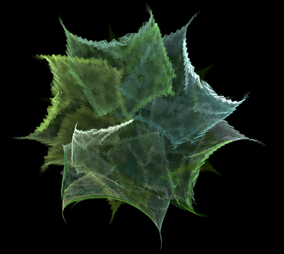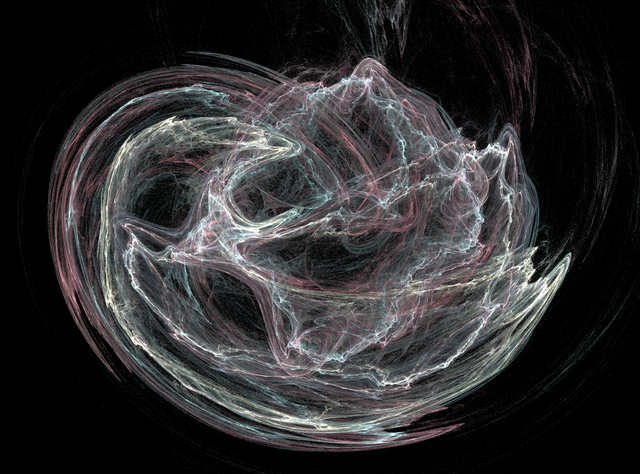 A couple of days ago I opened up Apophysis and checked what it generates. I screenshotted six of the ones I checked, as I deemed them good. This is one of them.This one is called Beast because it looks like there is a rhino-like creature and a bird-like creature, neither fully visible but still there. I think the singular of that word suits this better than the plural, but that's just my opinion.