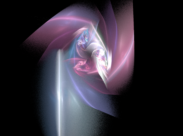 A couple of days ago I opened up Apophysis and checked what it generates. I screenshotted six of the ones I checked, as I deemed them good. This is one of them.To me, this looks like a purple ghost version of Subnautica's submarine Cyclops, but on the other hand it kinda looks like that Ghost Leviathan which was added to the game in the most recent update which came earlier this week, surprisingly called Ghost Update. That's why this piece earned its name, Ghost.