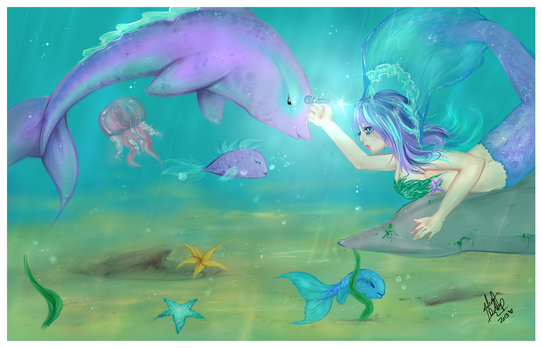 Commission ofr Ultraviolet on PS forum :"Xher mermaid pets