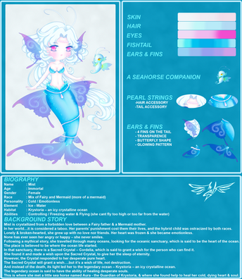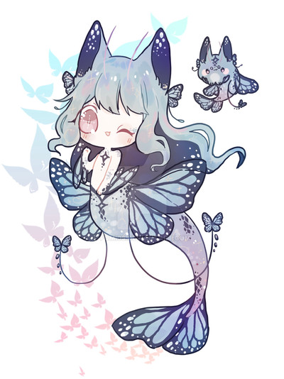 Omg I HUGEST COINCIDENCE. I ALSO have an OC named Mist who is also a mermaid with butterfly wings, white hair, and pink eyes. It's crazy! XD